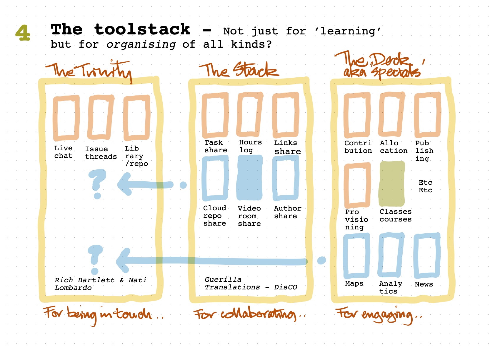 Since we first started thinking about the 'trinity' of digital tools, and added the DisCO stack of collaboration tools, things have moved on. It seems appropriate now to use an 'extended trinity' when thinking about an infrastructure of basic digital means for enabling collaboration.